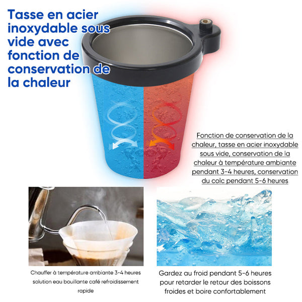 • Le design rotatif se transforme instantanément en deux : corps de tasse rotatif à 360°, plusieurs boissons et petits objets peuvent être placés sans prendre de place.