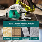 La lame de coupe au diamant est résistante aux hautes températures pour réduire les vibrations et des coupes plus droites et plus rapides. Il est tranchant et ne s'effondre pas, une seule pièce est polyvalente et résiste à l'usure.